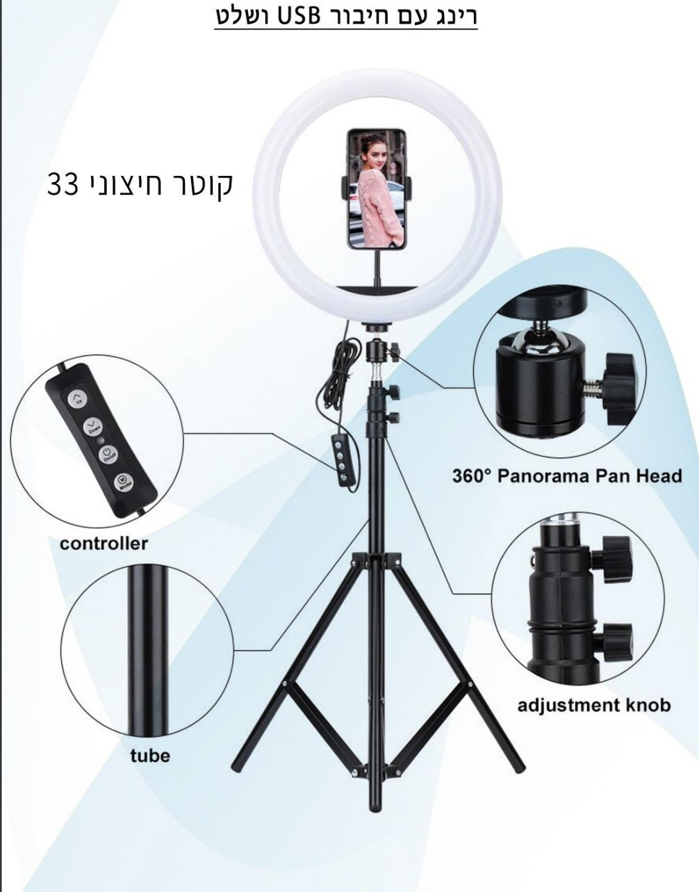 רינג לייט (3 גדלים) 33 ס”מ עם חצובה ענקית עד 2 מטר